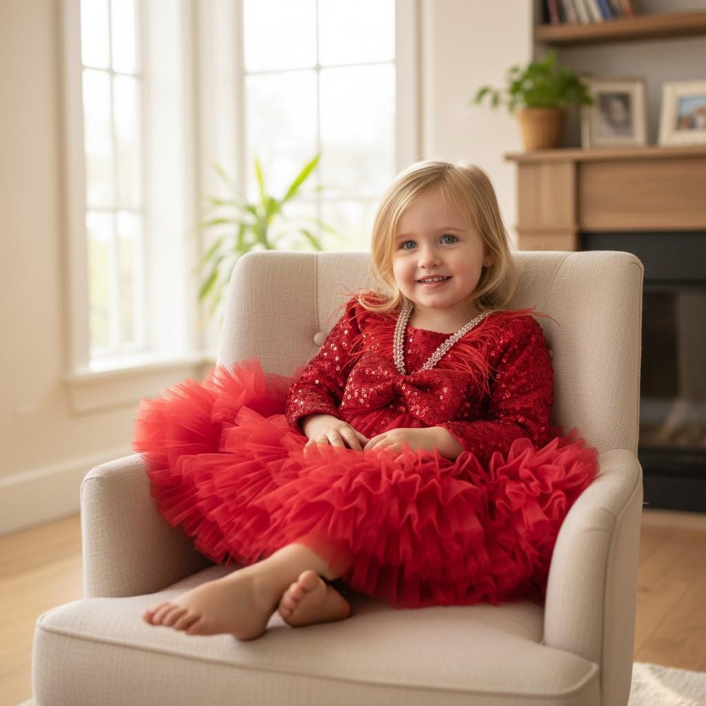 Red Tulle Christmas Dress: Holiday Toddler Party Dress