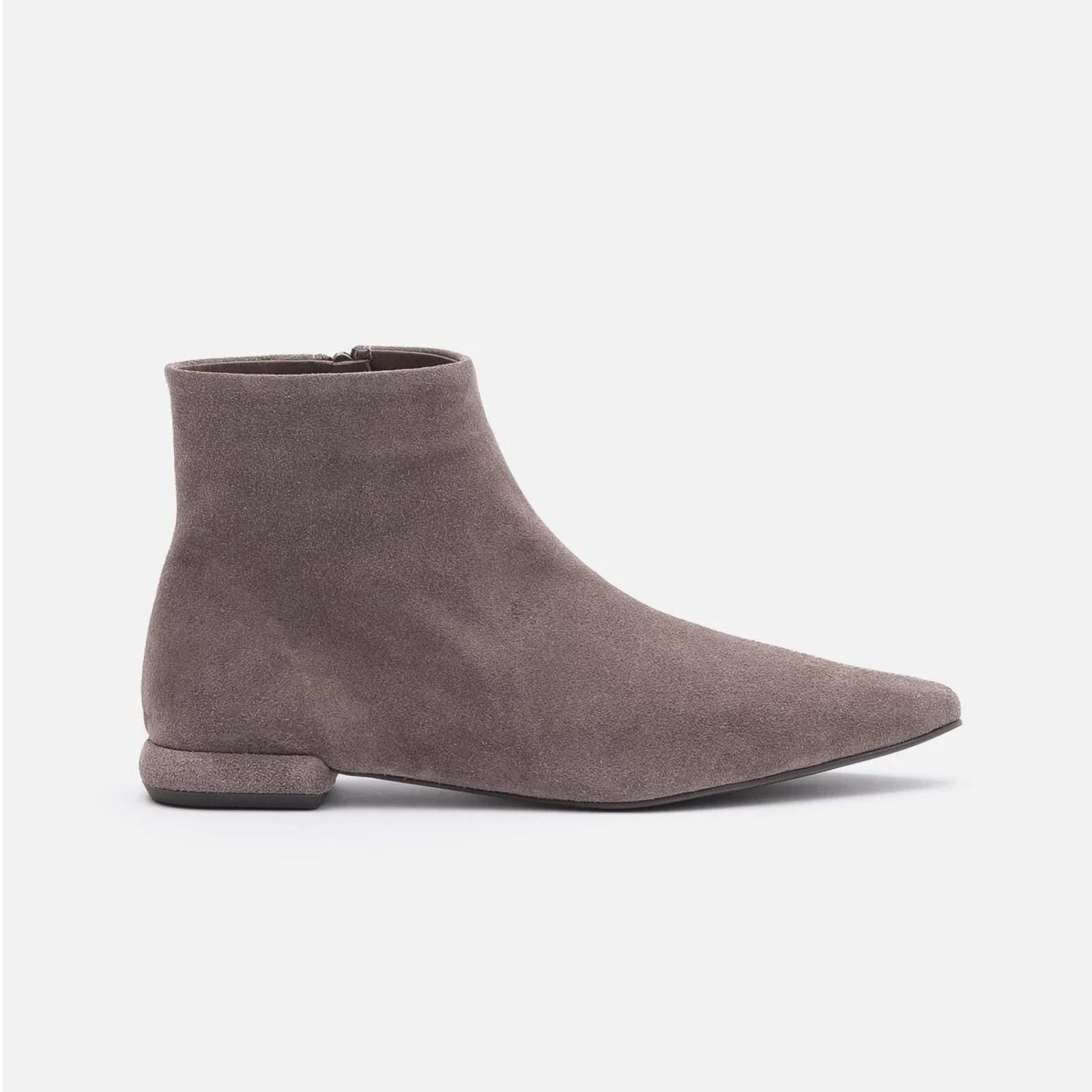 Taupe Suede Pointed Ankle Boots | Handmade Women’s Low Heel Booties | Elegant Soft Suede Zip Boots